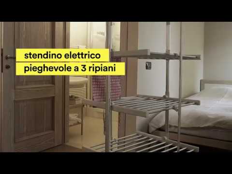 Casa piccola ma montagne di panni ad asciugare? Se non hai una terrazza o se fuori la pioggia imperversa, sarà perfetto questo utile stendino elettrico pieghevole a 3 ripiani: quando è chiuso ingombra pochissimo, mentre aperto ti offre lo spazio necessario per appendervi i vestiti, e dal momento che è riscaldabile, maglie, camicie e lenzuola asciugheranno velocemente! Realizzato in solido ma leggero alluminio, dim. aperto 144 x 71 x 67 cm ca.; dim. chiuso 144 x 71 x 9 cm ca. Alimentazione: 220-240V. Potenza: 300W.